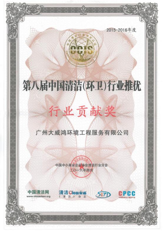 第八届中国清洁(环卫)行业推优(行业贡献奖)