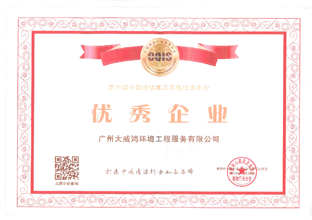 优秀企业证书